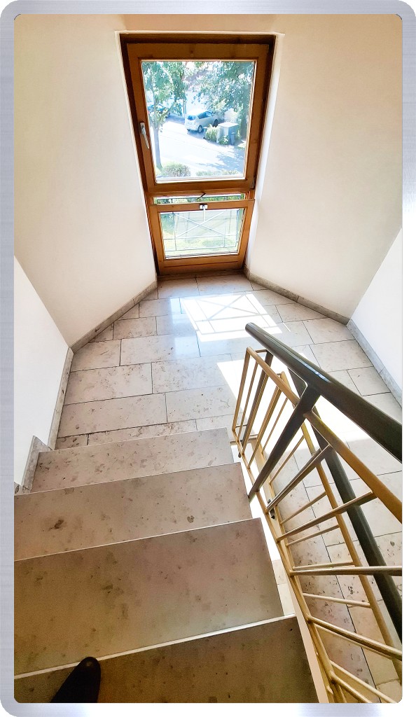 Über das Treppenhaus geht es zum Keller und zur Tiefgarage. ( ein Tiefgaragenplatz auf Wunsch zusätzlich erwerbbar)
